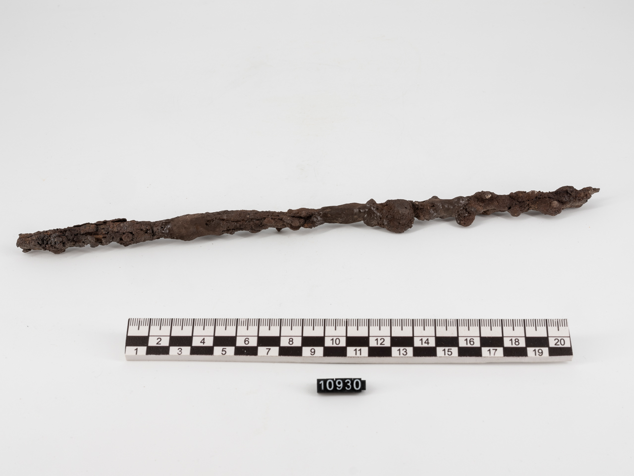Numerosi frammenti appartenenti forse a degli obeloi. Sono a sezione quadrata, di spessore costante. Uno di essi ha l'estremità inferiore a sezione circolare., l'altra estremità è munita di un pomello da cui partono corti artigli a raggera