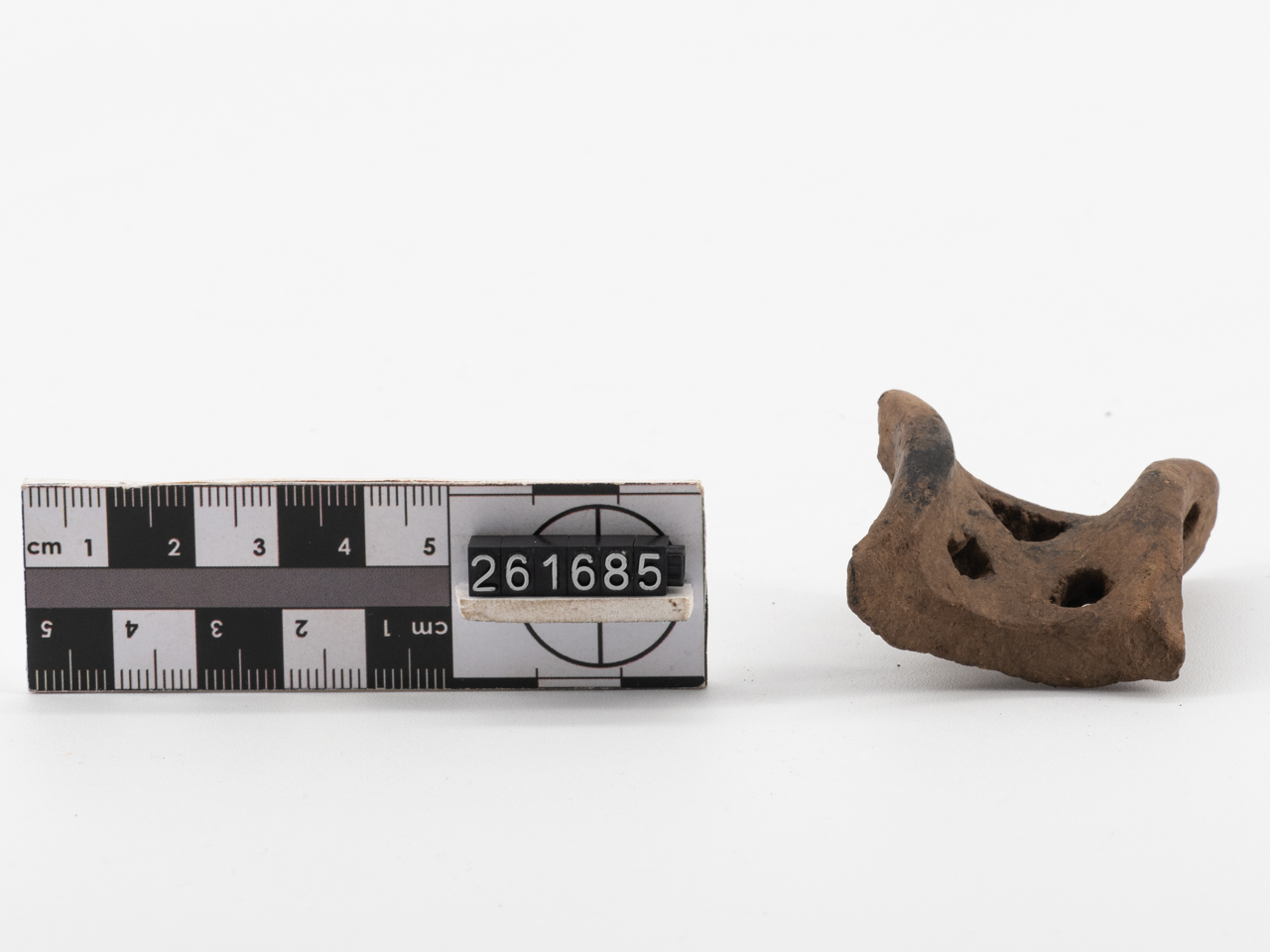 Ansa a nastro con estremità apicate e tre fori triangolari nel mezzo