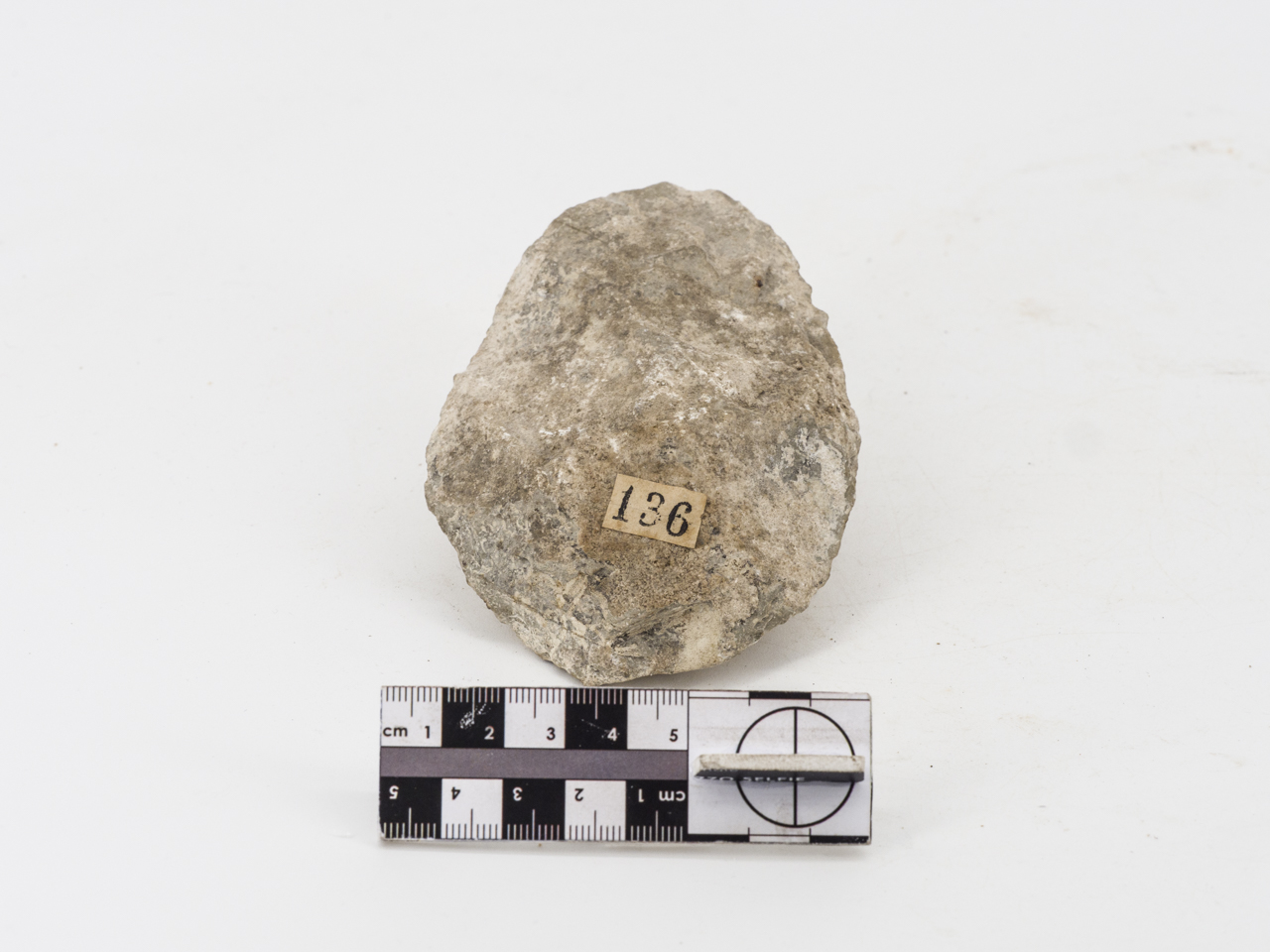 industria litica, bifacciale ovalare a punta stondata con margini leggermente sinuosi, cortice conservato alla base e parzialmente su una delle facce