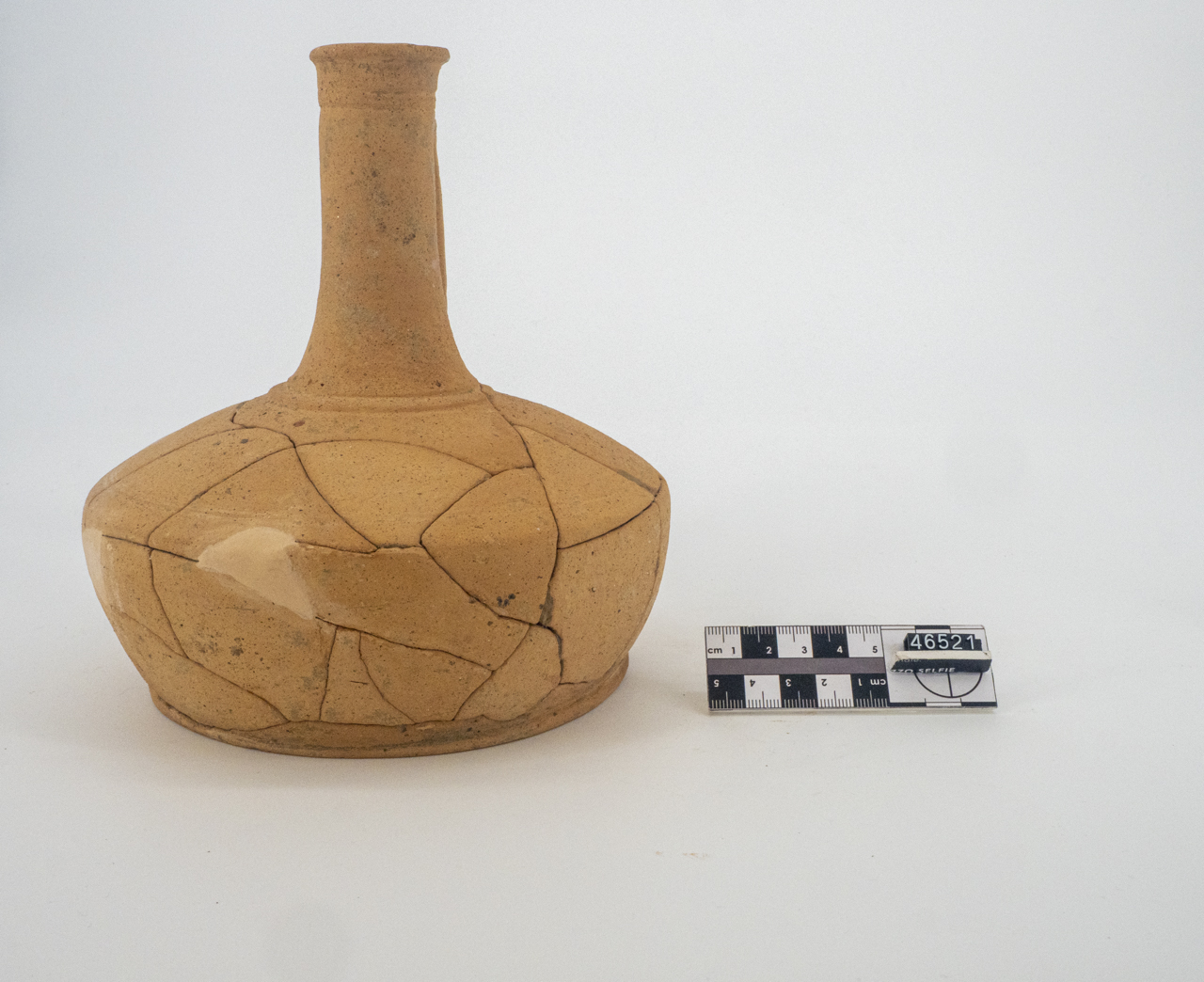 legynos con corpo biconico, spalla arrotondata; collo concavo; labbro ad anello; ansa a nastro costolato, verticale sotto il labbro