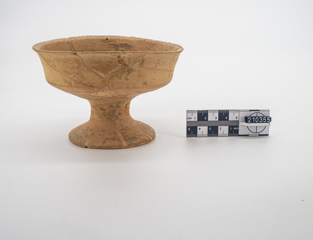 coppa su piede con due fori passanti subito sotto l'orlo