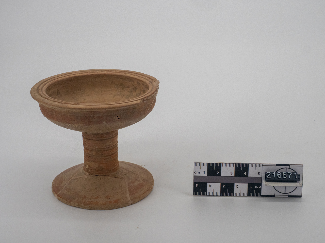 coppa su piede con tracce evanide di pittura di colore rosso
