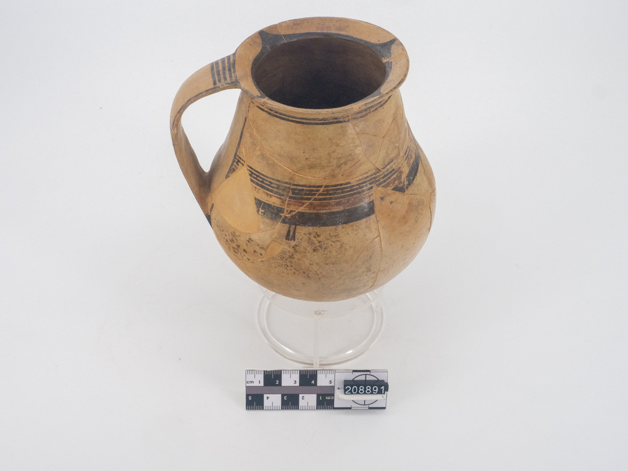 brocca con decorazione subgeometrica bicroma di colore rosso e bruno