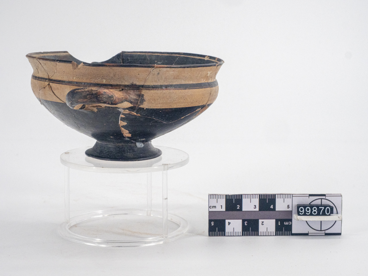 coppa ionica a vernice nera con fasce risparmiate sul corpo e all'interno delle anse