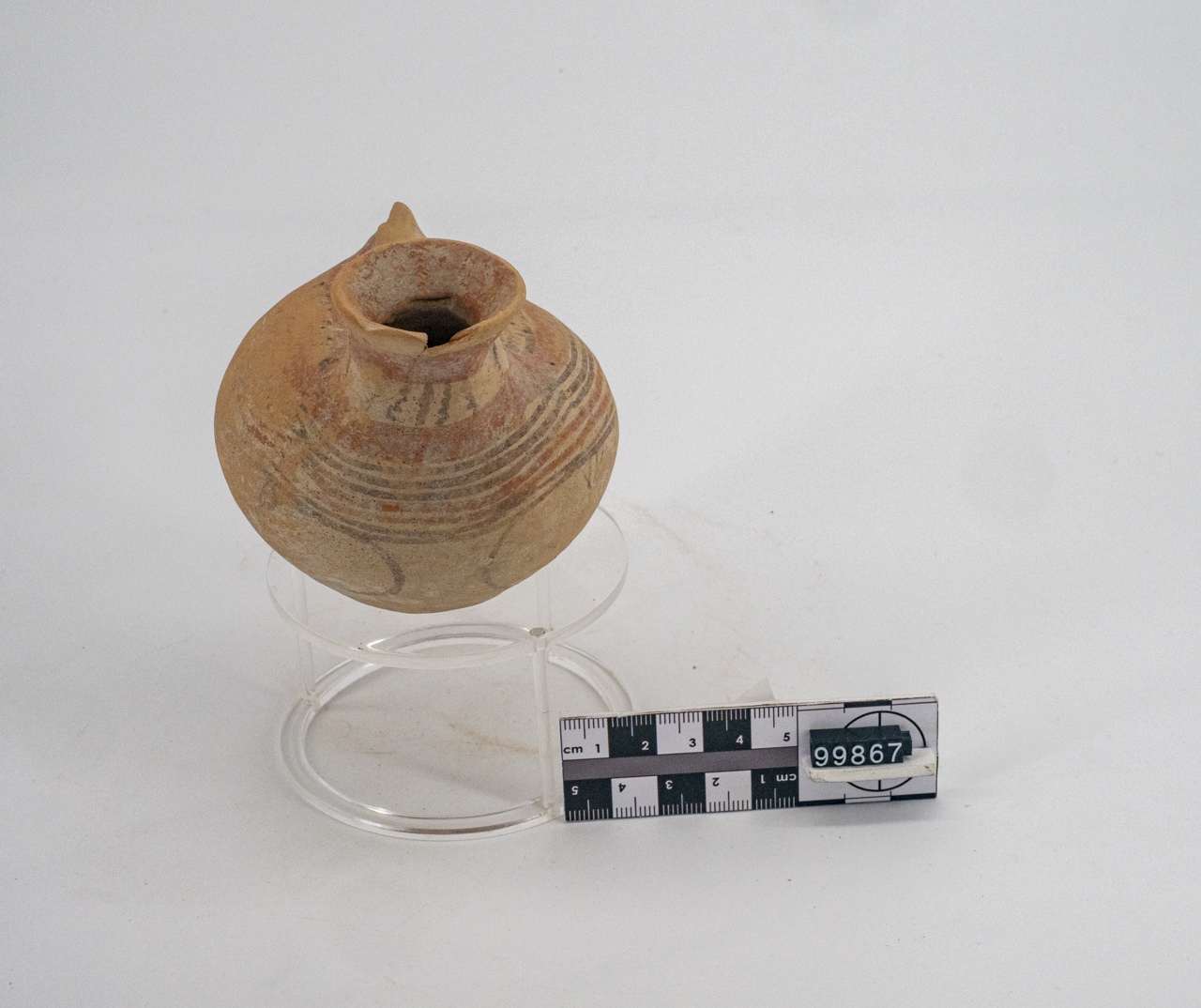askos miniaturistico con decorazione subgeometrica in rosso e bruno