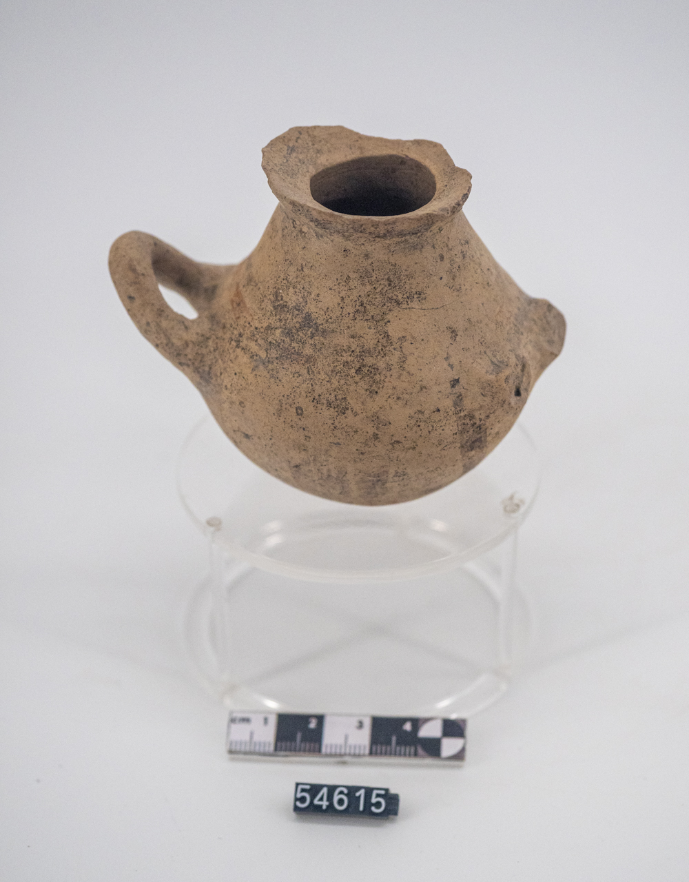 olletta biansata con decorazione bicroma a fasce alternate di colore rosso e violaceo