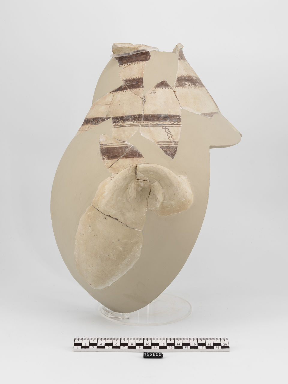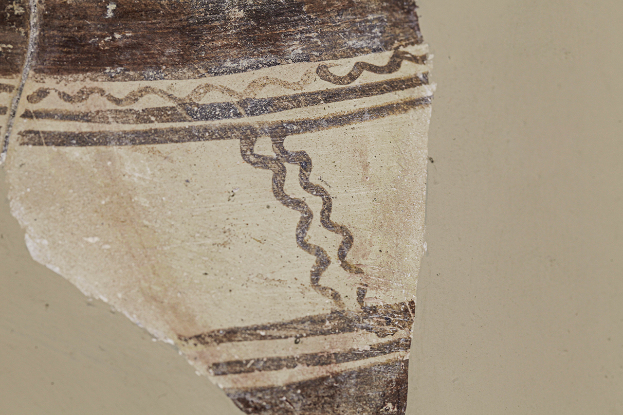 Olla in ceramica matt-painted medio-geometrica. Collo rigonfio; ansa a bastoncello