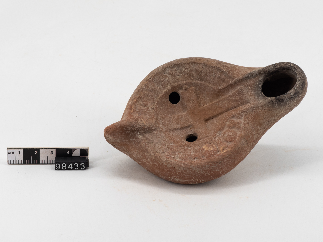 Lucerna di produzione nord-africana, in argilla rosso/bruna