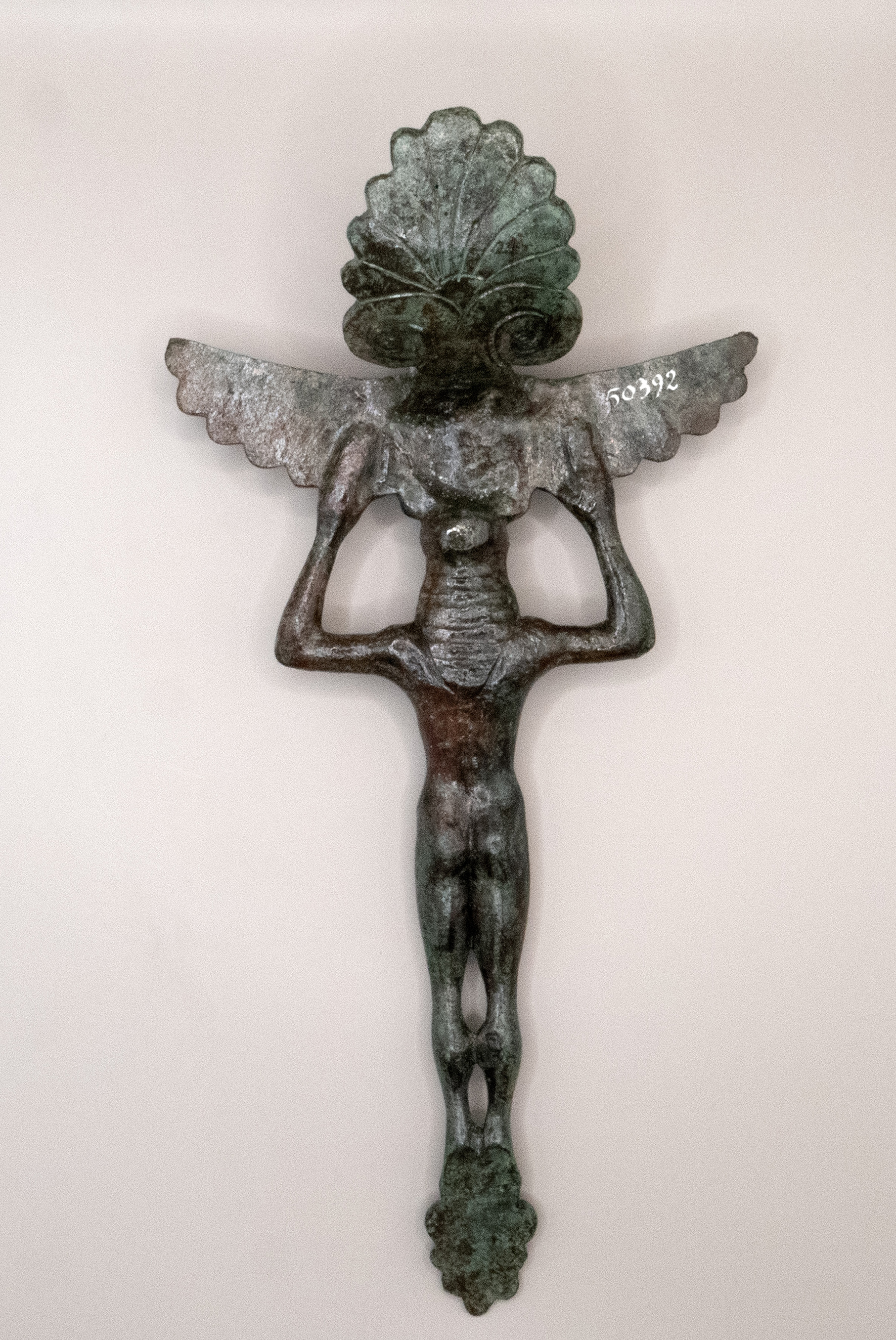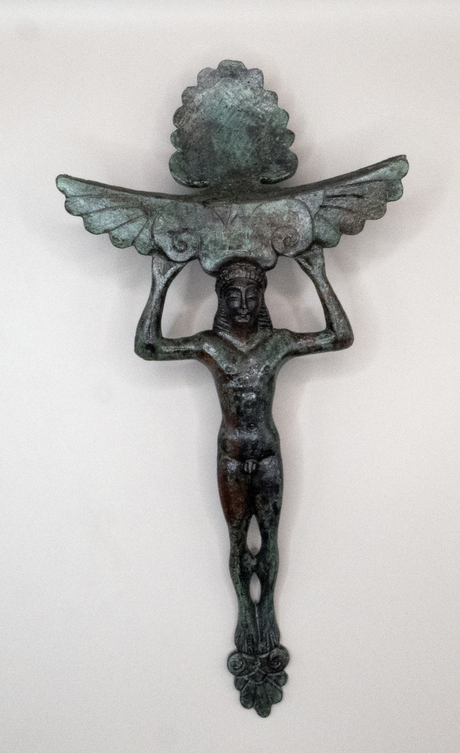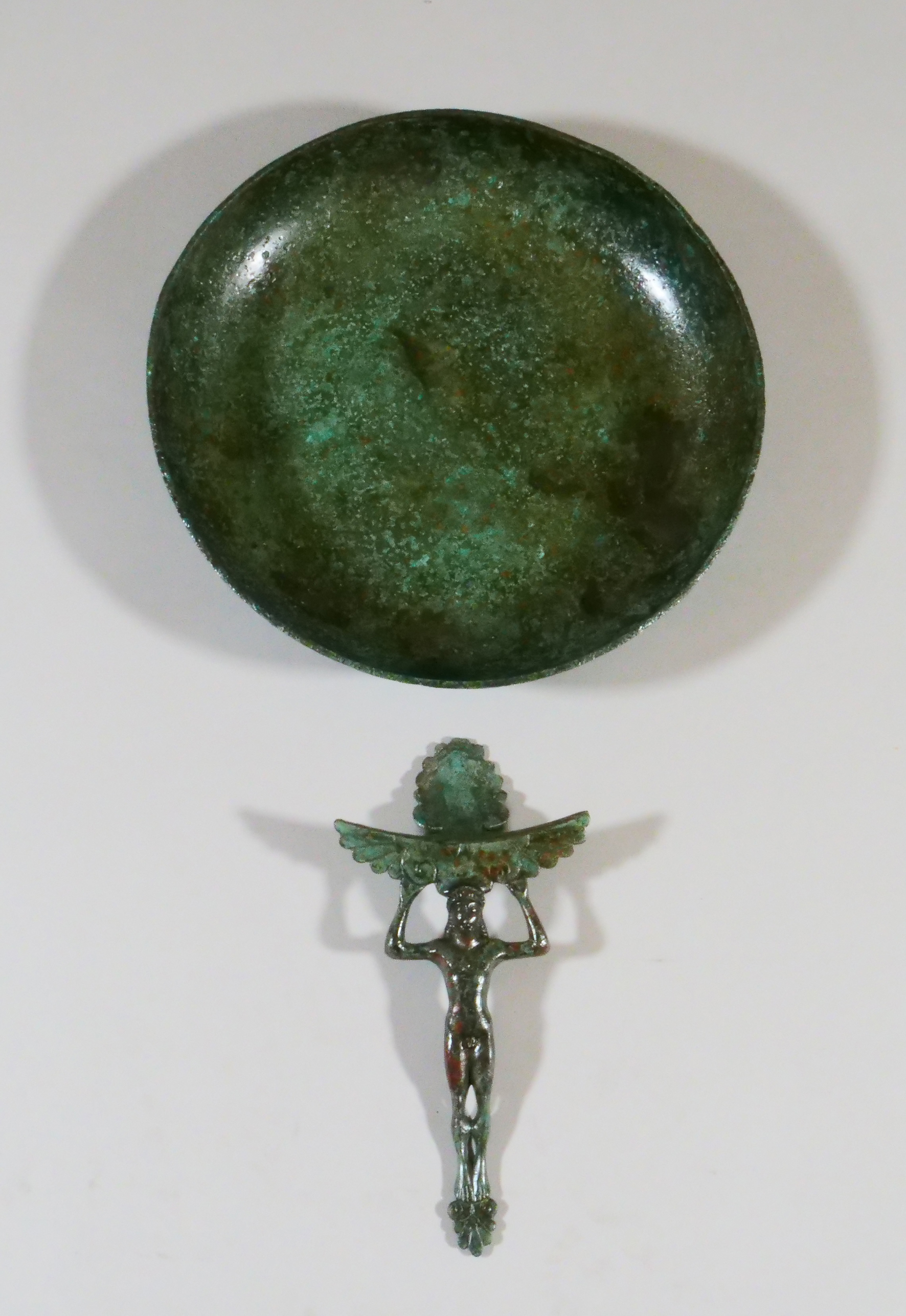 patera di bronzo con ansa antropomorfa