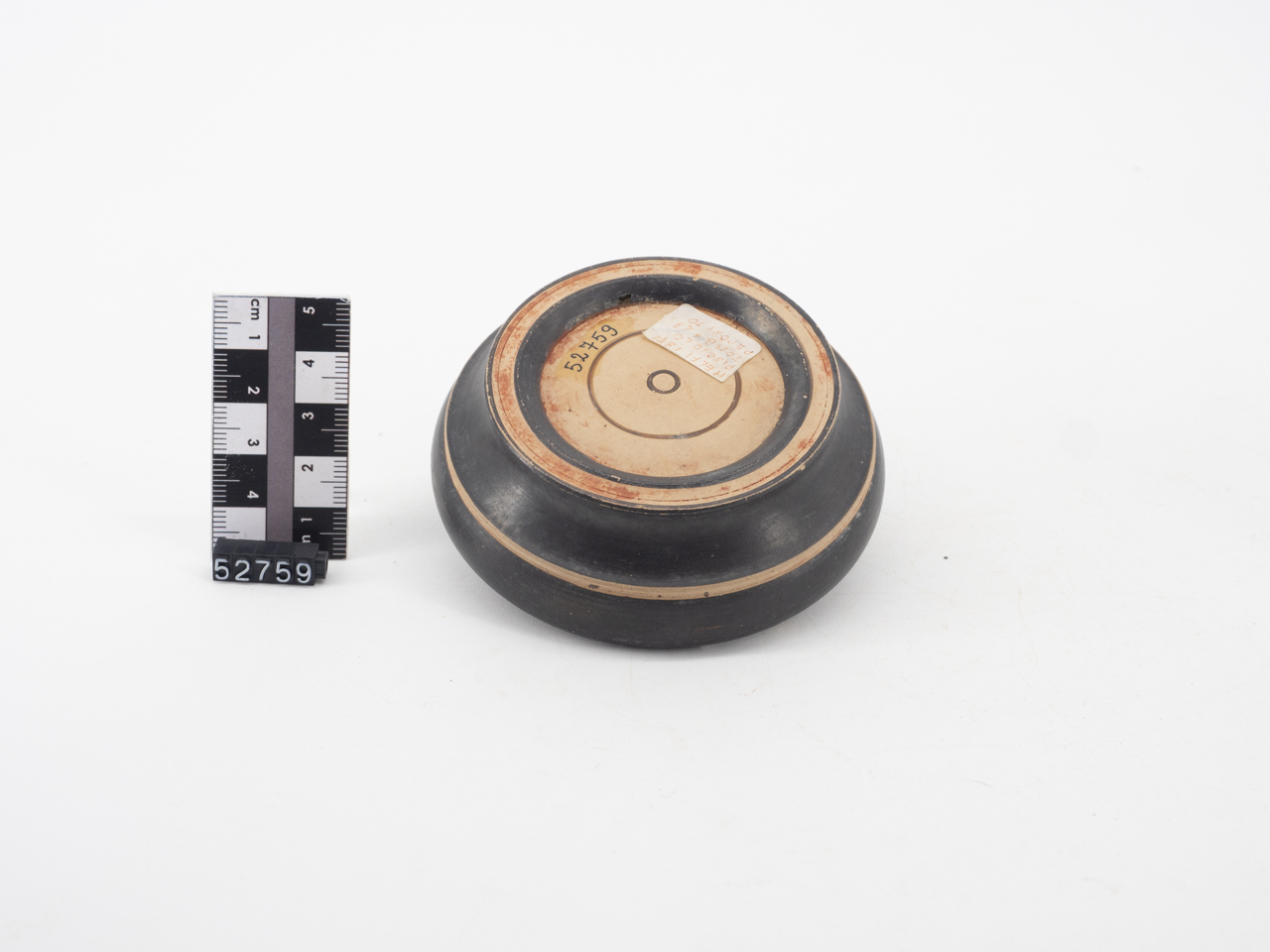 Ciotola a vernice nera. Piede ad echino con profilo concavo, distinto dal bacino, con una ripresa risparmiata