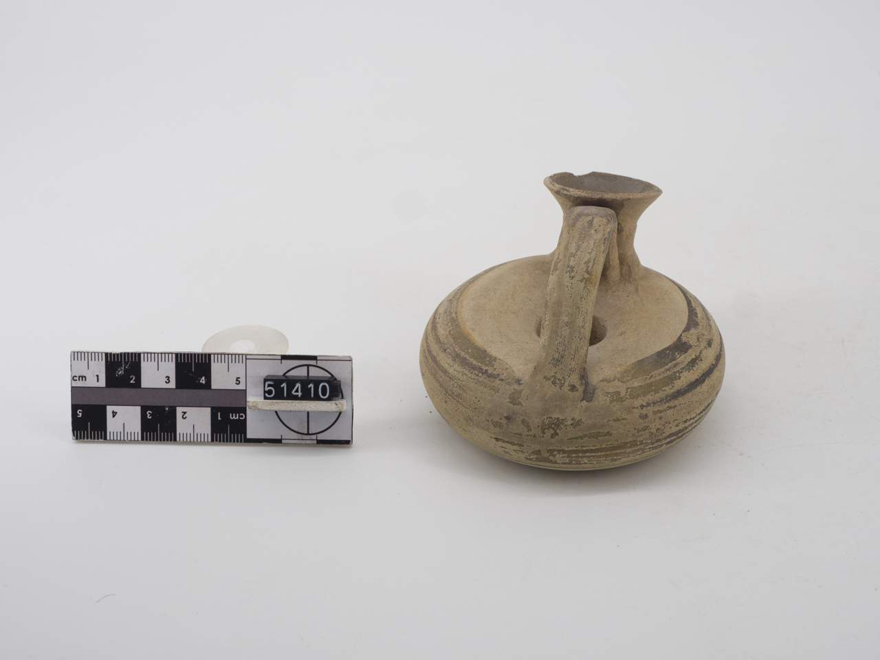 Askos ad anello decorato con vernice bruna sulla fascia centrale del corpo, sull'orlo e sull'ansa
