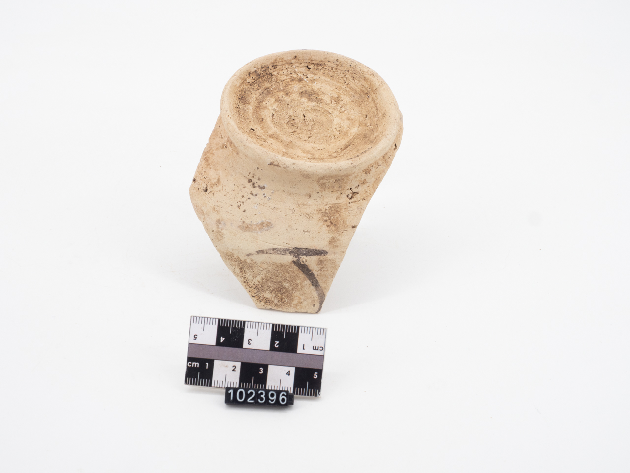 Ciotola (o bacino) con corpo dalla bassa carena appena accennata e piede ad anello. Rivestimento vetroso semi coprente steso sulla superficie interna del corpo ceramico e sulla parte alta all'esterno