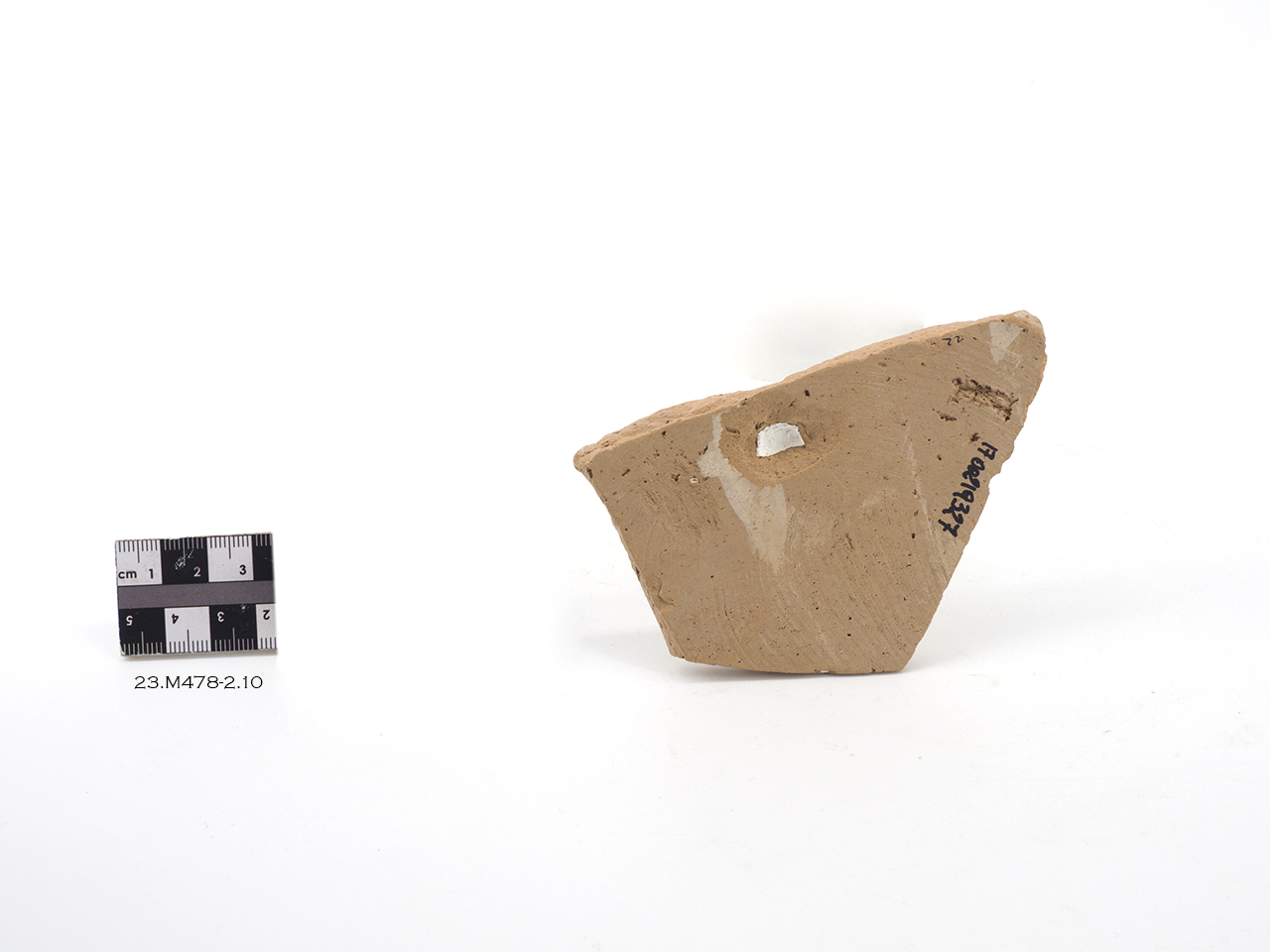 Frammento di fondo di bacino. Ingobbio biancastro e rivestimento vetroso trasparente all'interno