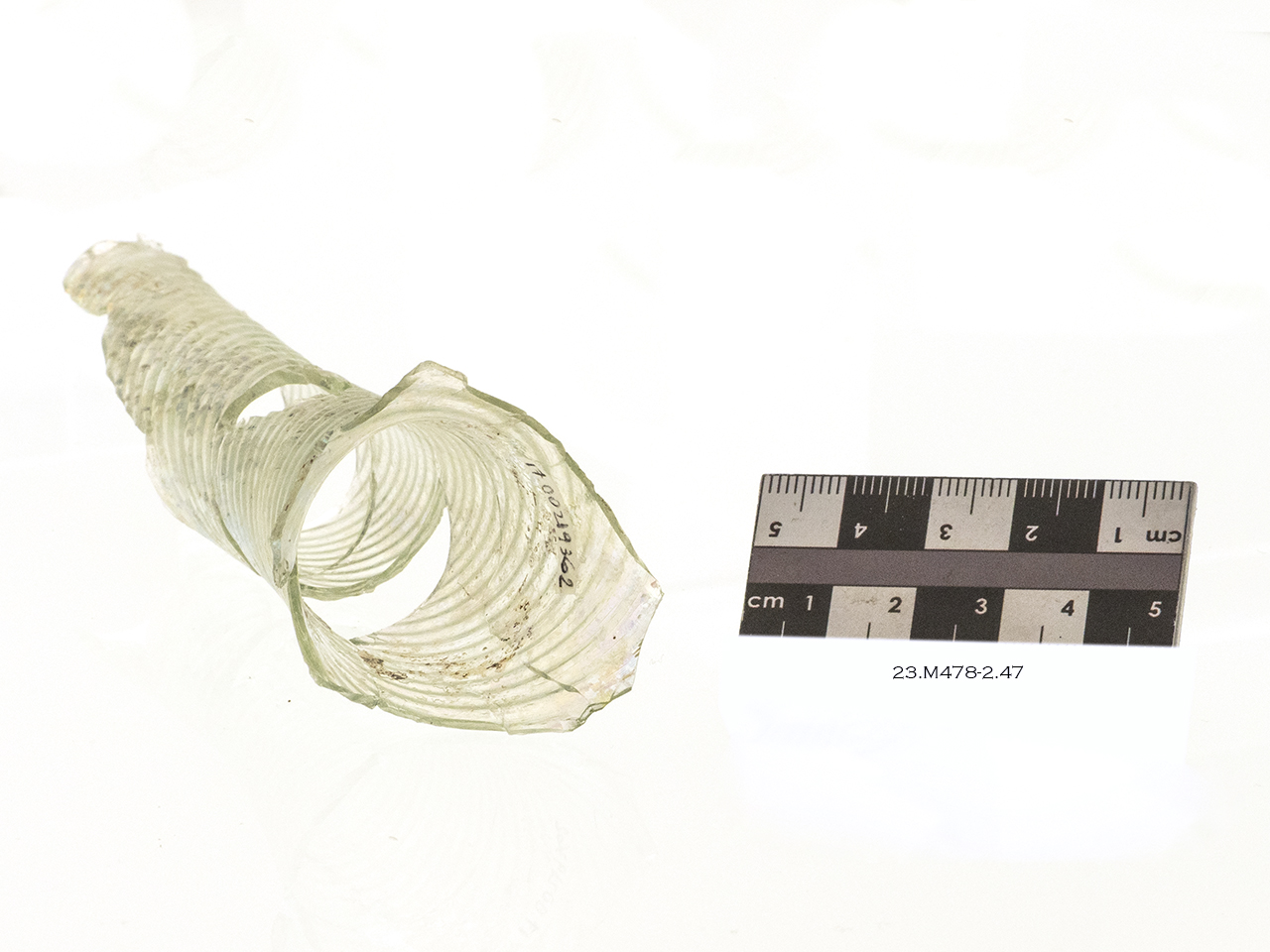 Bottiglia in vetro trasparente dall'alto collo dal profilo leggermente concavo e modellato a torchon