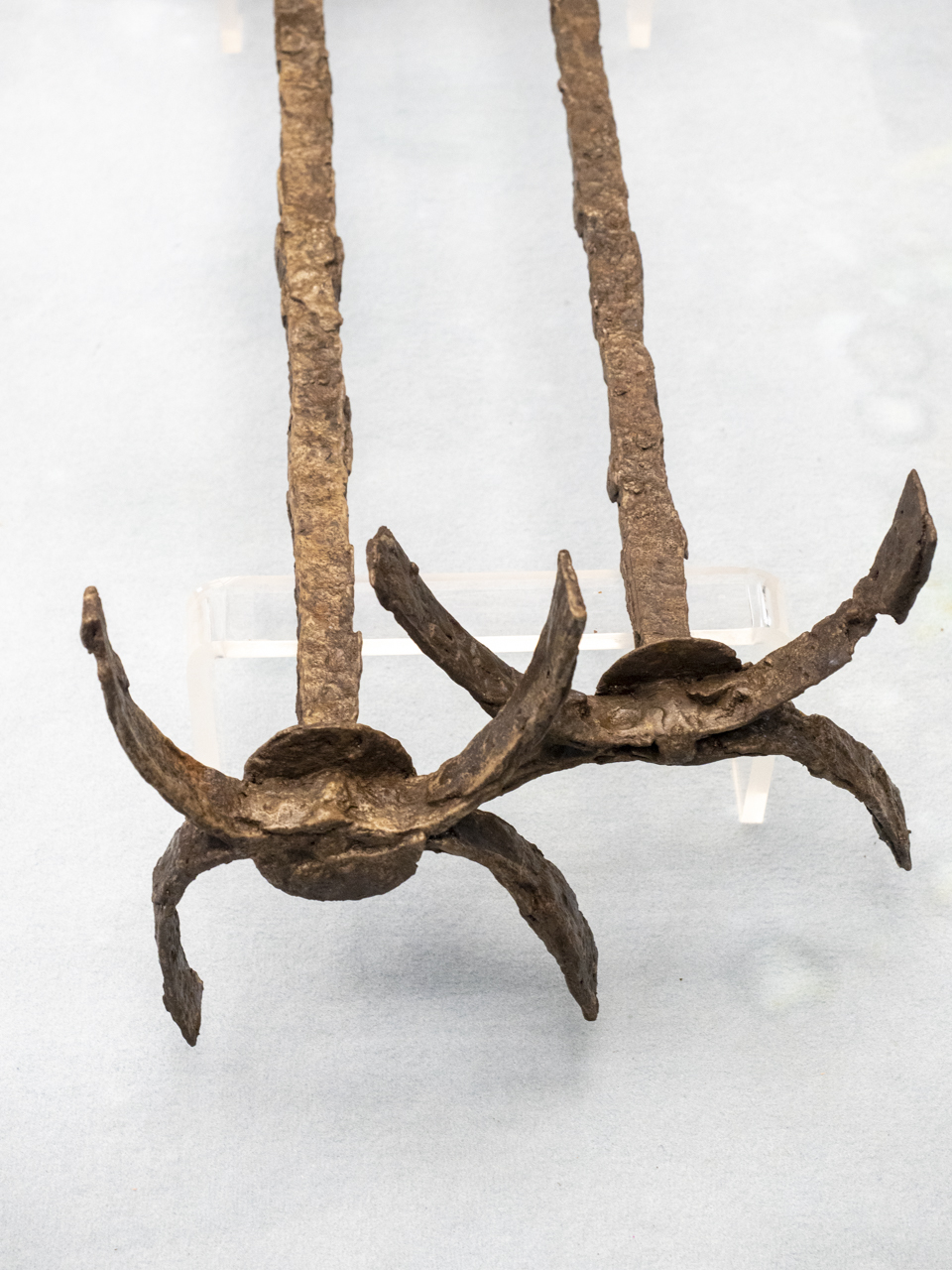 N. 2 alari in ferro con terminali a semicerchio contrapposti