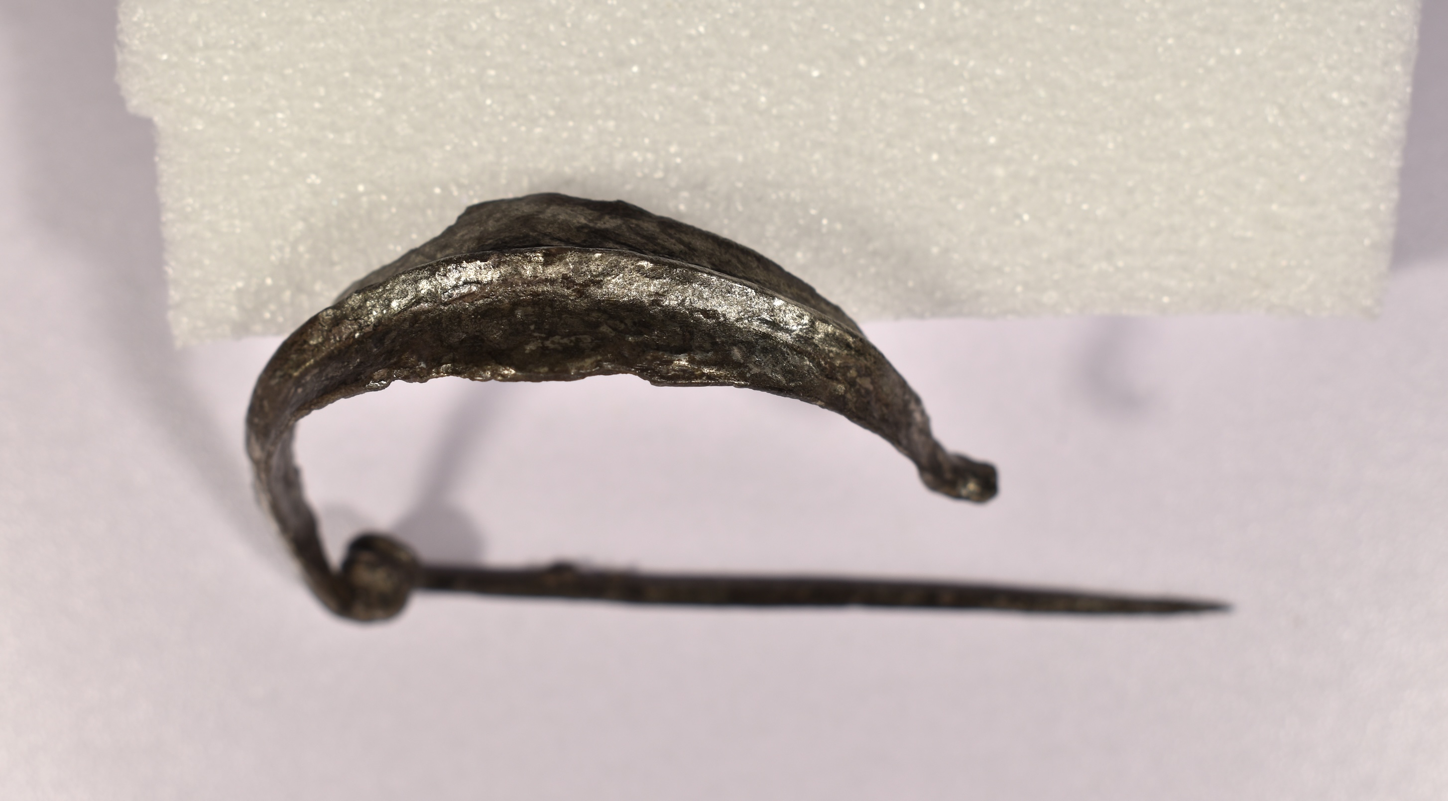 Fibula ad arco con costolatura centrale. Si conserva l'ardiglione. Lacunosa della staffa