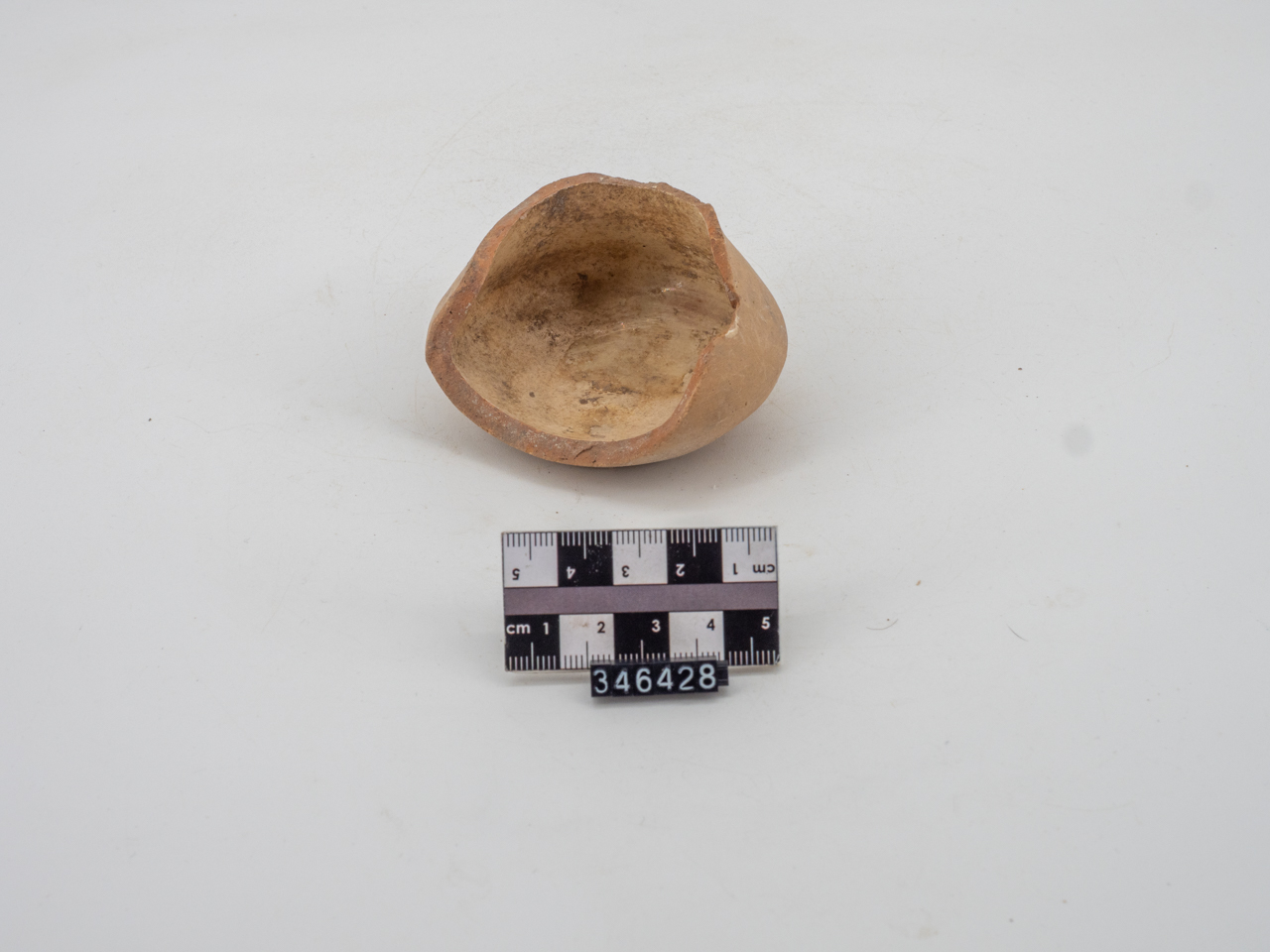 Frammento di lucerna del tipo " a teiera", con corpo pseudo biconico, collo tronco e base piana. All'interno, ingobbio biancastro e rivestimento vetroso semi coprente color crema. All'esterno, sgocciolature di ingobbio