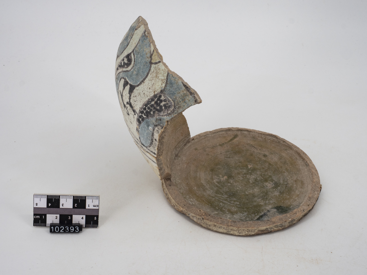 Forma chiusa tipo brocca, con corpo ovoide ed accenno di basso piede anulare Rivestimento vetroso semi coprente, tipo "protomaiolica", steso sulla superficie esterna del corpo ceramico. Rivestimento vetroso trasparente tendente al verdino, all'interno. Impasto beige-rosa