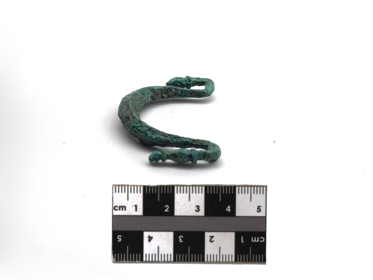 Maniglia ad arco modanato, con terminali rigirati. Si conservano i punti di aggancio