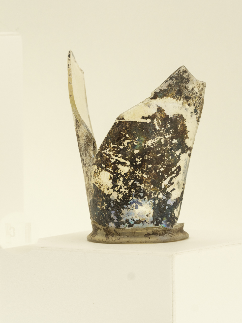 - NOTIZIE STORICO CRITICHE Il manufatto trova confronti, per morfologia e tecnica decorativa, in vetri simili provenienti dal castello di Lucera. Attribuito ad artigiani islamici o influenzati dalle tecniche dell'artigianato islamico, il bicchiere risponde al gusto diffuso presso la corte di Federico II di Svevia. Il manufatto è inedito
