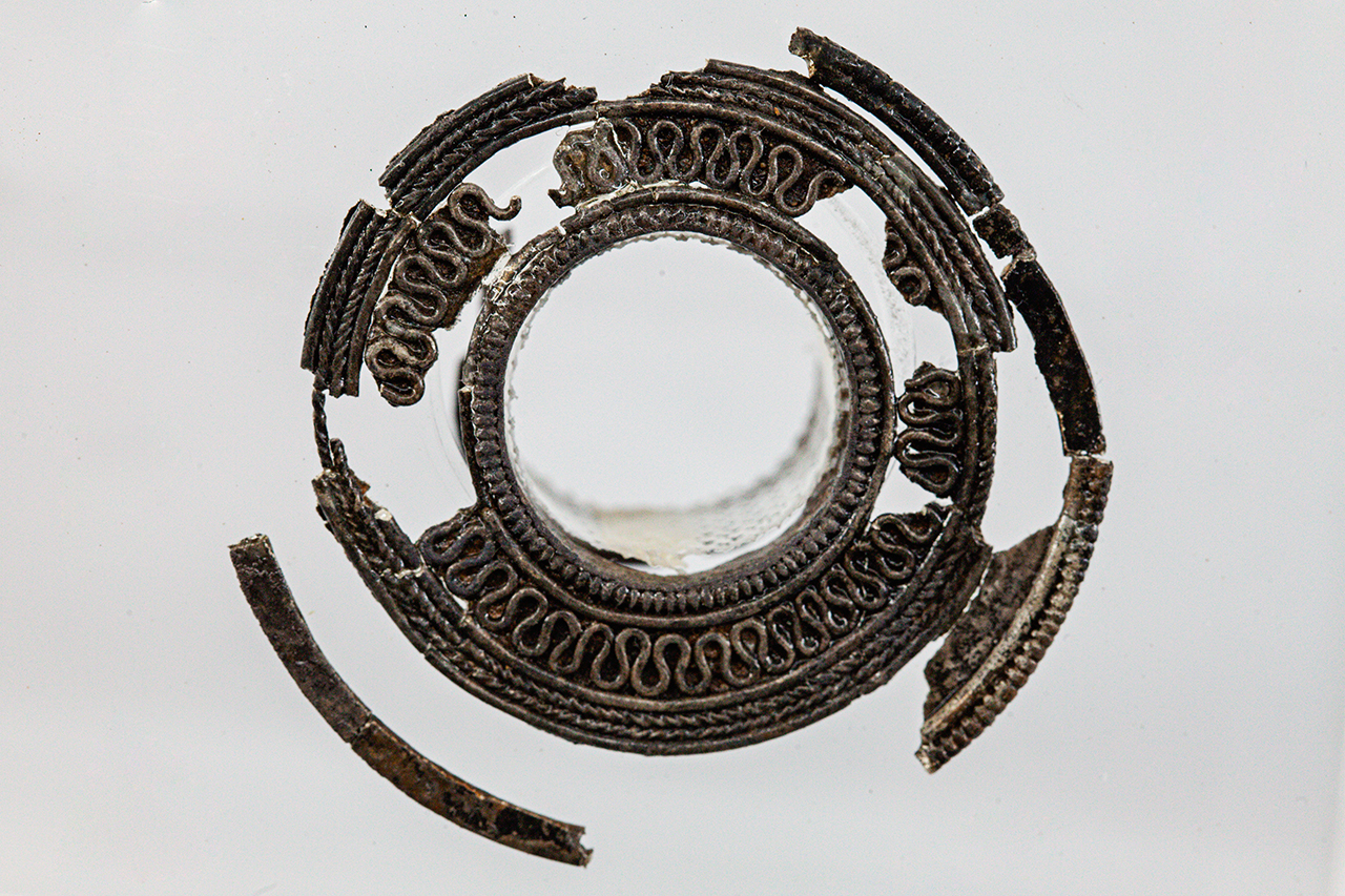 Fermatreccia. Filigrana d'argento. Elegante decorazione a sbalzo. Parzialmente ricomposto