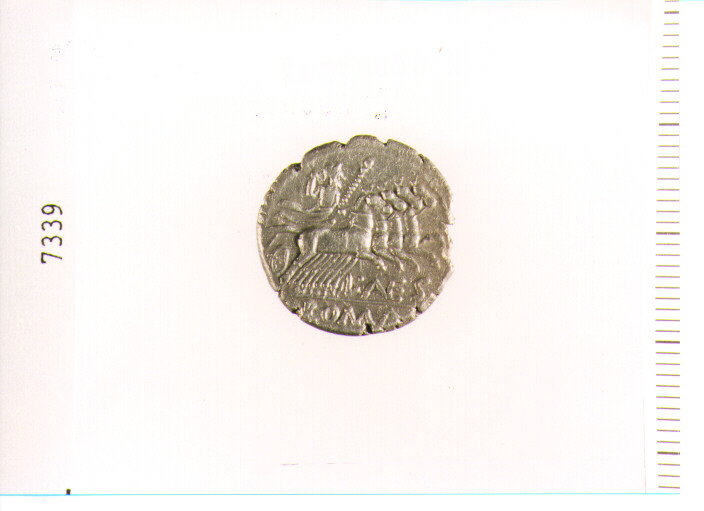 D/ T. DI ROMA ELMATA A D.; A S., LEGENDA, A D., S. DI VALORE; R/ GIOVE SUQUADRIGA A D., HA SCETTRO E REDINI NELLA S. E SCAGLIA FULMINE CON LA D.; SOTTO E IN ESERGO, LEGENDA