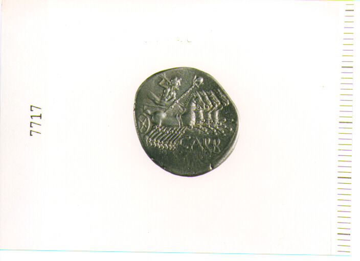 D/ T. DI ROMA ELMATA A D.; A S., SEGNO DI VALORE; R/ GIOVE SU QUADRIGA A D., CON REDINI E SCETTRO NELLA S., SCAGLIA FULMINE CON LA D.; SOTTO E IN ESERGO, LEGENDA