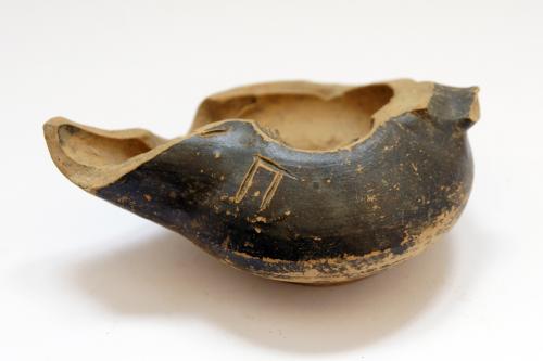 Lucerna frammentaria a vernice nera con lettera steccata a crudo sul disco