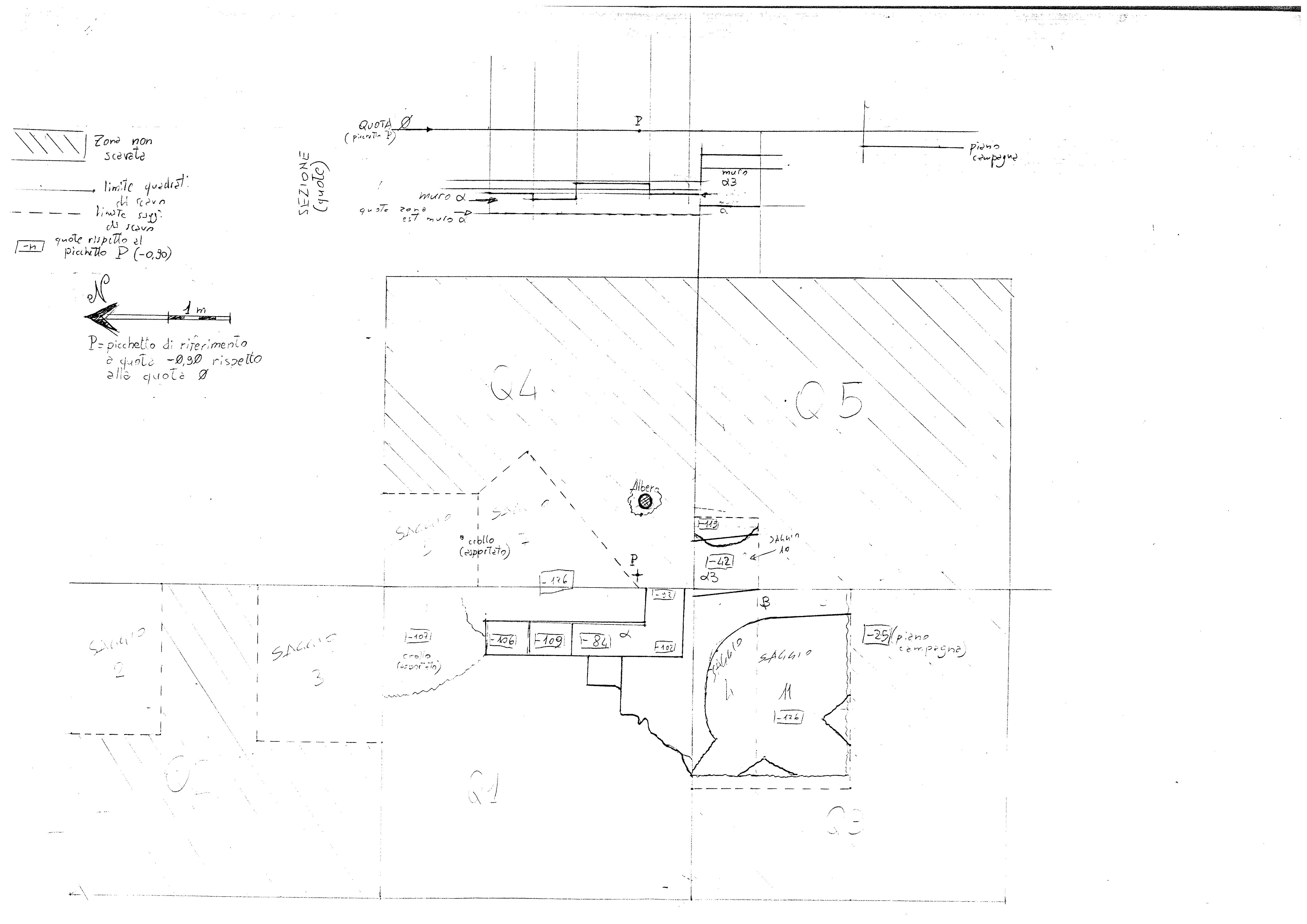 - INTERPRETAZIONE Le indagini archeologiche hanno permesso di raccogliere una serie di dati (in particolare numerosi frammenti vitrei e laterizi, ma soprattutto alcuni frammenti di ceramica decorata a bande e spirali rosse, databile al XII-XIII secolo d.C.), che hanno consentito di inquadrare cronologicamente le strutture affiorate (resti di insediamento sparso Bassomedievale) e di valutarne l'interesse documentario per la storia del territorio