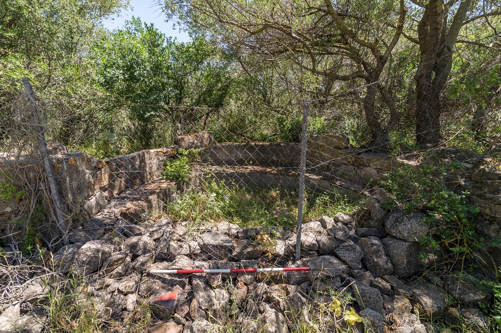 resti di un edificio absidato, realizzato con blocchi di scisto ben squadrati e posti a filari regolari. Il muro laterale N presenta un piccolo ingresso nella parte in cui si innesta l'abside (orientata a E). Nei dintorni si evidenziano resti ceramici tra la vegetazione. Le pareti mostrano tracce di intonaco