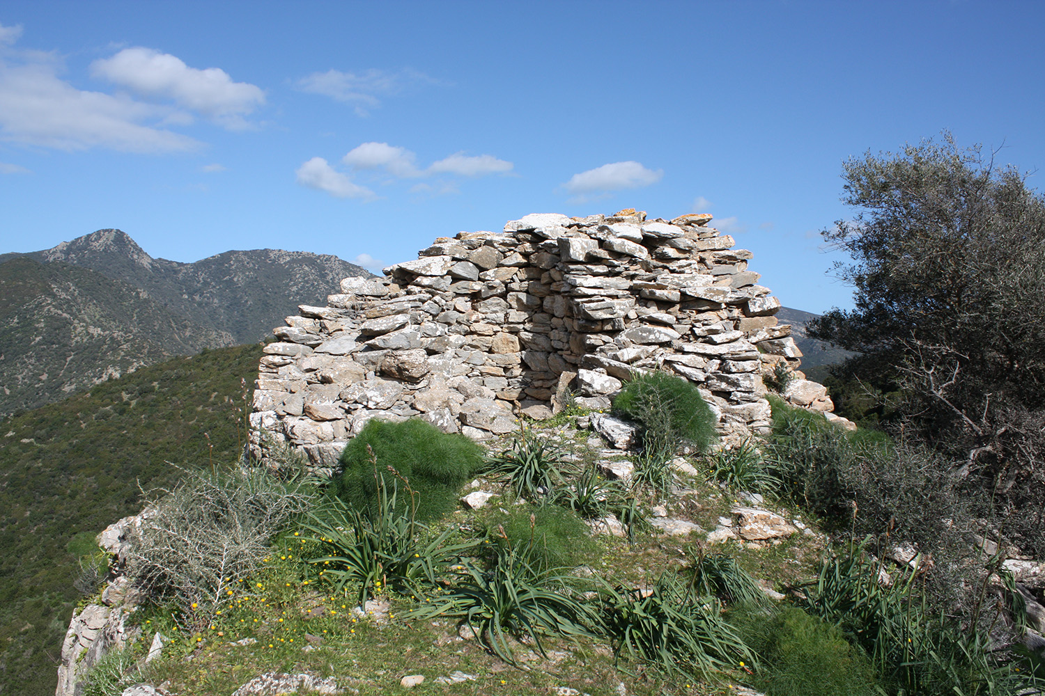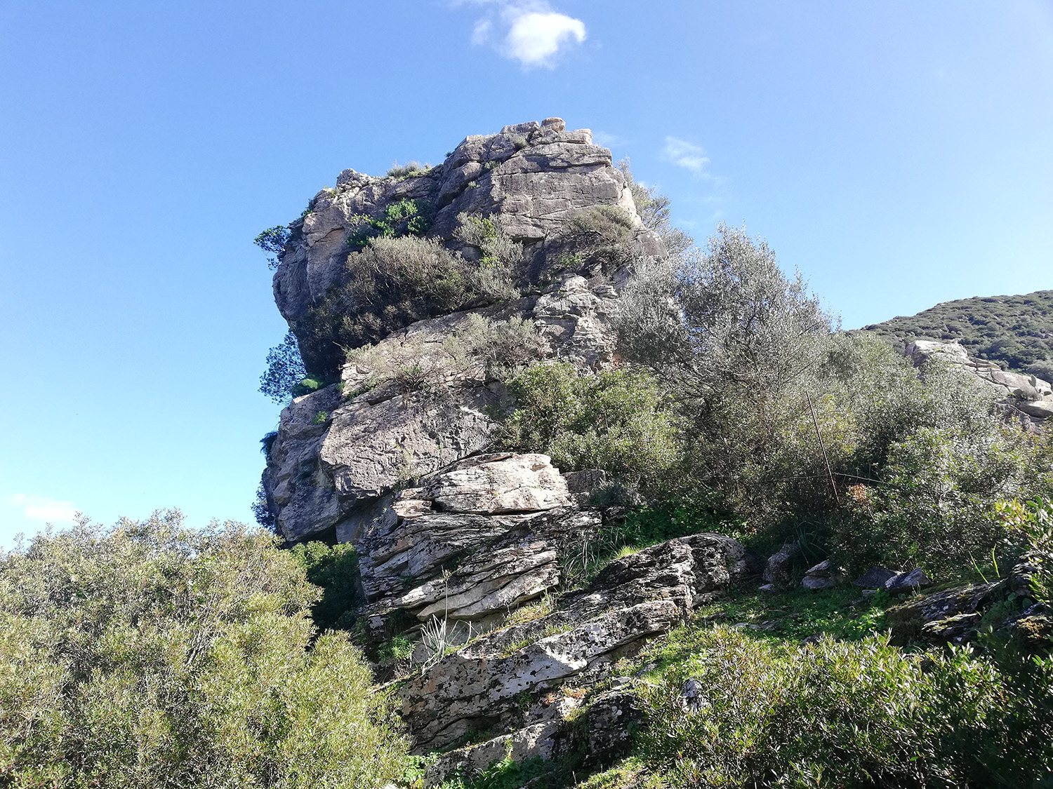 Il monumento si compone di un nuraghe monotorre situato su un roccione a strapiombo sulla valle e di una struttura megalitica posta circa 10 metri a est. Entrambe le strutture sfruttano e si adattano alla morfologia degli affioramenti rocciosi. Il nuraghe è costituito da filari irregolari di blocchi sommariamente sbozzati; il lato sud-ovest si presenta parzialmente interrato, mentre l’ingresso alla struttura non è visibile. La struttura megalitica, di incerta planimetria a causa dello stato di conservazione, risulta realizzata con filari di blocchi appena sbozzati di medie dimensioni posti in opera a secco nei lati est e sud, mentre il nord si connota per l’utilizzo di materiale lapideo di piccole e medie dimensioni posto in opera in parte a secco e in parte legato con malta di fango. L’ingresso, dotato di architrave e finestrello di scarico, si apre a est. Il lato ovest della struttura risulta parzialmente interrato e ricoperto di vegetazione