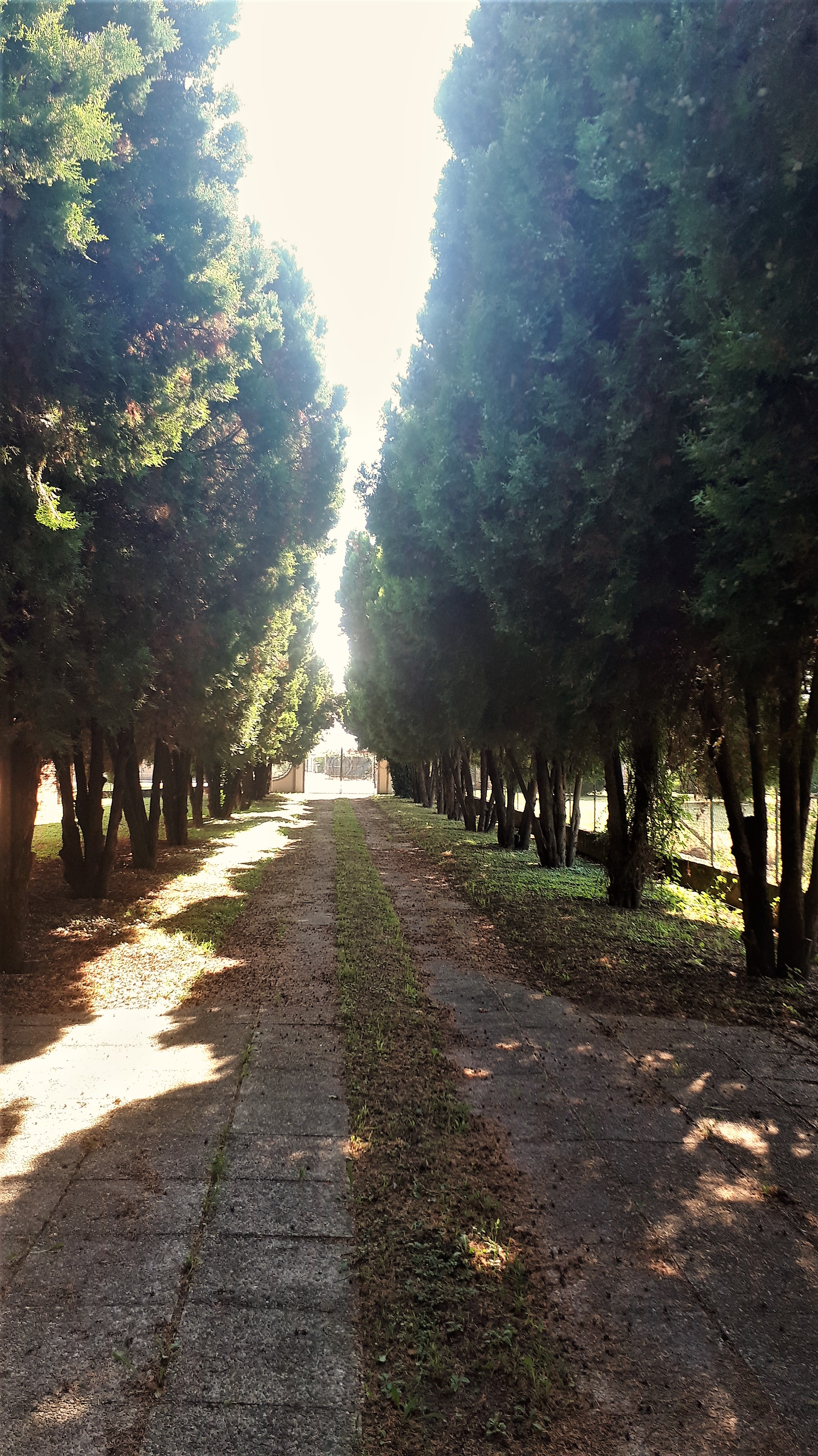 Il parco è in addosso al muro di chiusura nord occidentale del cimitero comunale ed hanno entrambi l'accesso da via Marconi, è collocato in contesto urbano ed è separato dalla strada da una cancellata in ferro battuto