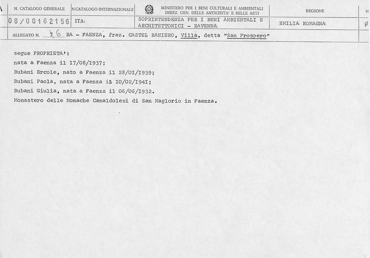 - ENTE SCHEDATORE Soprintendenza per i Beni Architettonici e Paesaggistici per le province di Ravenna Ferrara Forli'-Cesena e Rimini