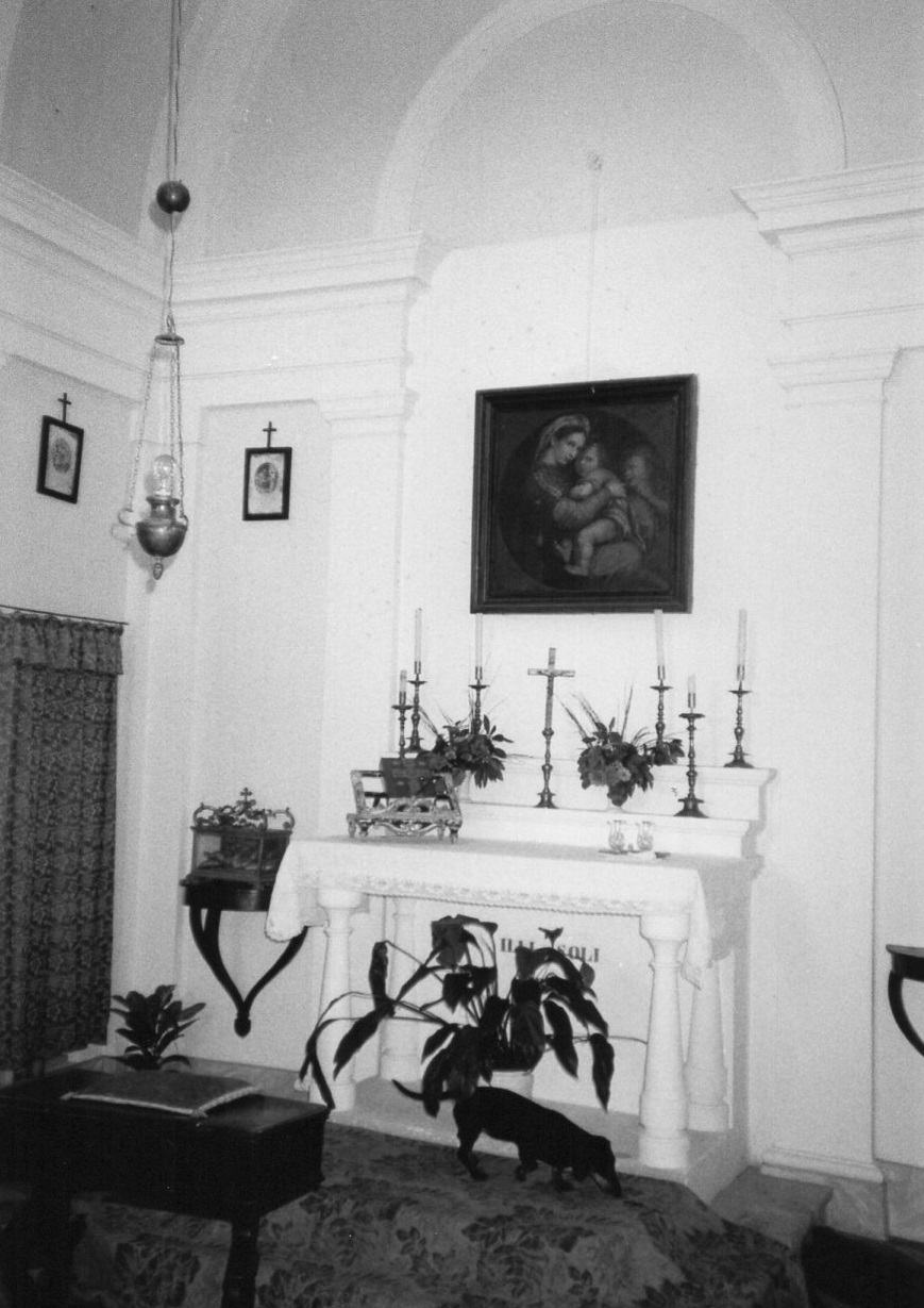 Edificio a pianta ad aula unica; strutture verticali in laterizio; copertura a tetto con manto in laterizio. Edificio inglobato nell'attiguo corpo di fabbrica della villa
