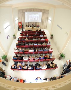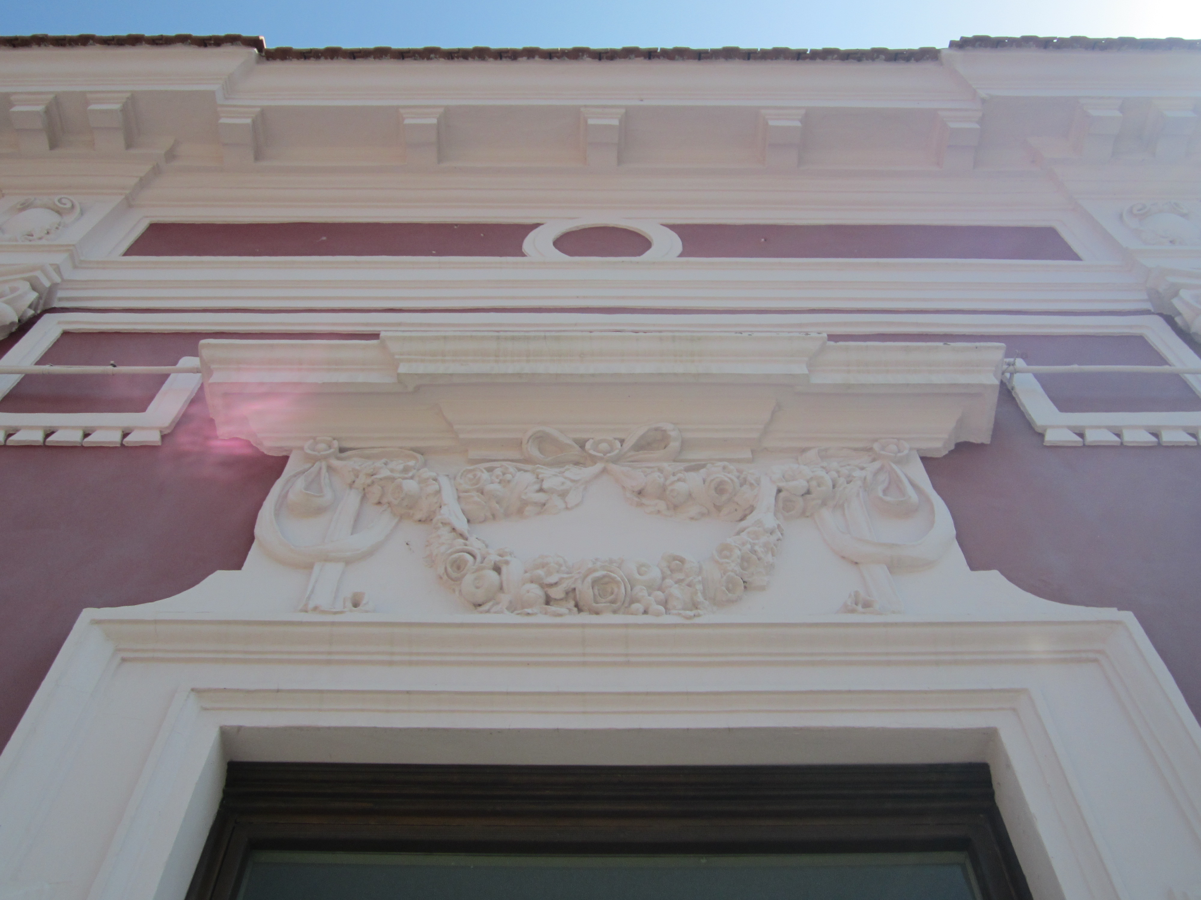 E’ un ambiente unico a doppia altezza, preceduta all’ingresso da due locali di servizio, la cui copertura costituisce un soppalco dotato di balaustra con affaccio sulla sala. Due ampi finestroni sormontati da arco circolare sulla parete opposta all’ingresso illuminano la Sala, decorata con lesene, paraste, capitelli e modanature in stucco raccordate con le travature del soffitto, decorato con medaglioni a motivi geometrico-floreali. La pavimentazione è in graniglia. La struttura muraria è in laterizio. La facciata è tripartita verticalmente da lesene a sostegno di una finta trabeazione orizzontale culminante con un cornicione aggettante e modanato. Il portale centrale presenta stipiti ed architravi decorati con stucchi