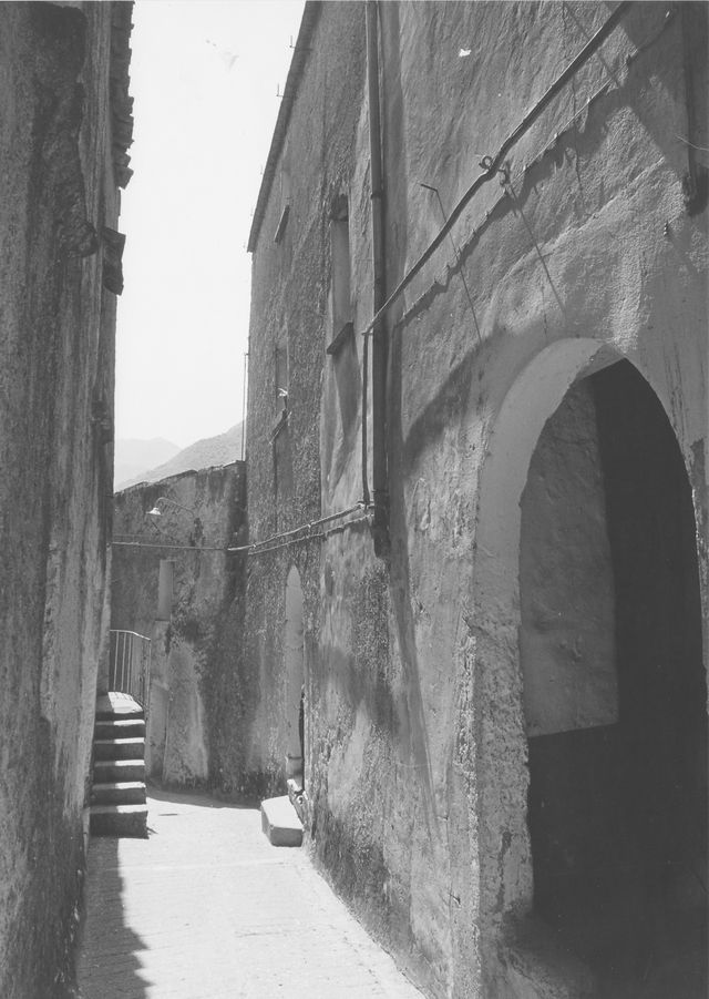 L'edificio è dotato di pianta regolare e si sviluppa su tre piani. L'edificio è aggregato ad altre unità edilizie. Ha affaccio su strada (versante sud) e su cortile esterno (versante nord)