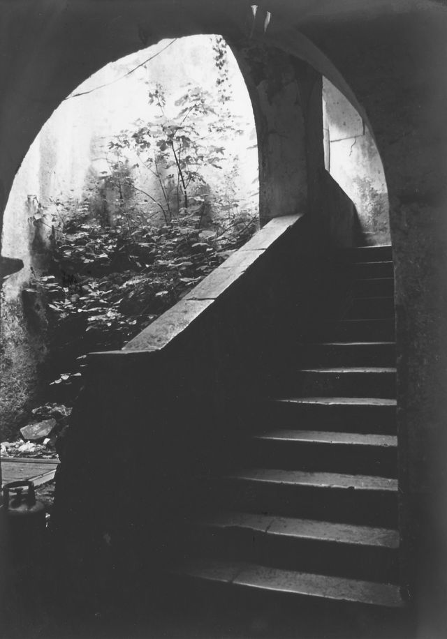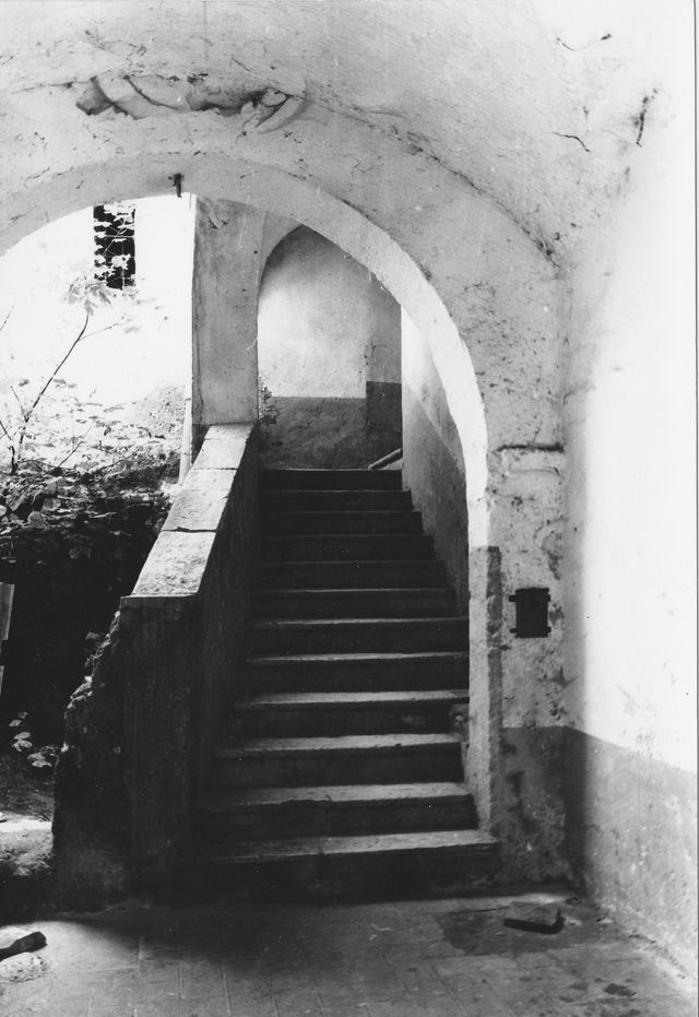 L'edificio si sviluppa su tre piani. La pianta ha impianto regolare con chiostro centrale rettangolare ed è di forma trapezia. La muratura è in pietrame di varia pezzatura a filari, e in parte intonacata. La copertura è a semplice e doppio spiovente con manto di copertura in coppi. Oltre alla sede della biblioteca all'interno del palazzo sette unita abitative
