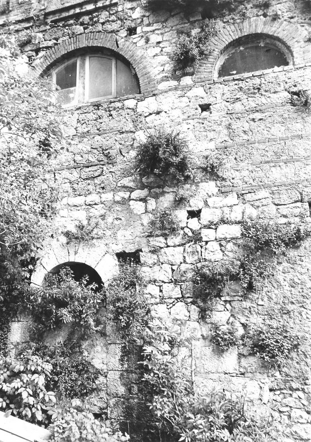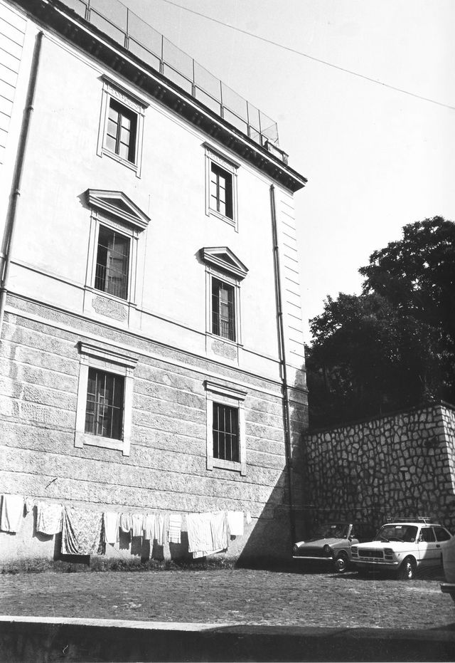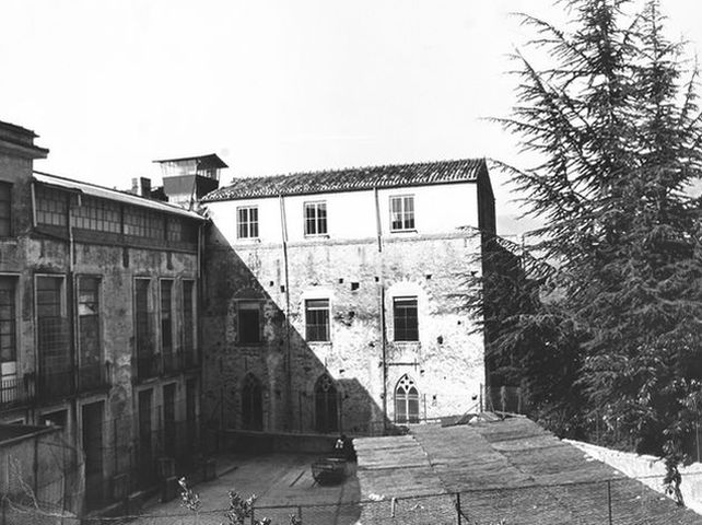 L'edificio si presenta composto da due corpi, il primo a pianta rettangolare con cortile porticato all'interno, il secondo a pianta chiusa resa irregolare da interventi del XX secolo. Il primo corpo presenta due livelli oltre il piano terra e un piano seminterrato La muratura è a filari di pietra calcarea e tufo intonacati. Il tetto è a doppio spiovente e a terrazzo