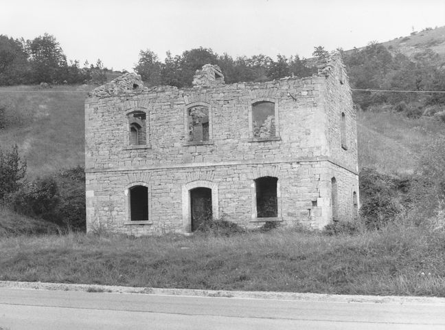 L’edificio in pianta rettangolare si sviluppa su due livelli di piano, la muratura portante è in pietra. La copertura, distrutta, era a due falde simmetriche. L’edificio presenta, su tutte le facciate, aperture simmetriche e gli architravi sono ad arco ribassato. Il primo livello è segnato da un marcapiano in pietra