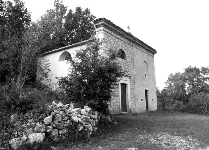 La chiesa è disposta secondo un orientamento Est-Ovest e presenta un impianto pressoché quadrata è stata successivamente divisa in due aule con copertura a due falde. La parte privata presenta un’unica navata illuminata da una finestra semicircolare posta in facciata e una posta sulla parete laterale; il portale è in pietra. L’altra parte è intonacata e presenta una volta a botte illuminata a due bucature ai lati del portale d’ingresso; la zona presbiteriale è leggermente rialzata rispetto al piano della navata. La facciata presenta un portale in pietra ed in asse una piccola finestra