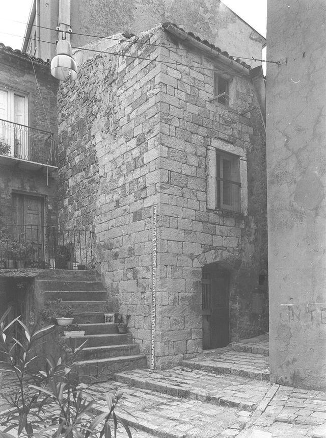 edificio con struttura muraria continua in pietra in pianta di forma trapezoidale