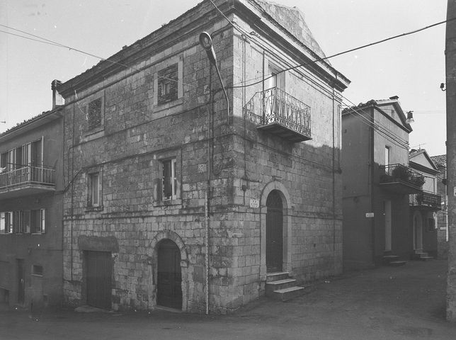 Edificio a pianta trapezoidale, due ingressi su livelli diversi, a tre piani, in muratura di pietra a corsi regolari; solai piani in ferro e laterizio; tetto a capanna con coppi di laterizio; cornicione aggettante con copricornicione di marsigliesi