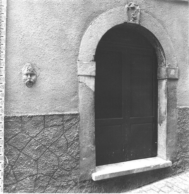 Edificio di pianta rettangolare a tre piani, in muratura in pietra intonacata; portale ad arco a tutto sesto e stipiti in pietra lavorata; finestre a filo del muro; cornicione sporgente; orizzontamenti in ferro; solaio di copertura in c.a.; tetto a falde con manto in coppi. Nell'immobile oltre le due unità abitative un deposito
