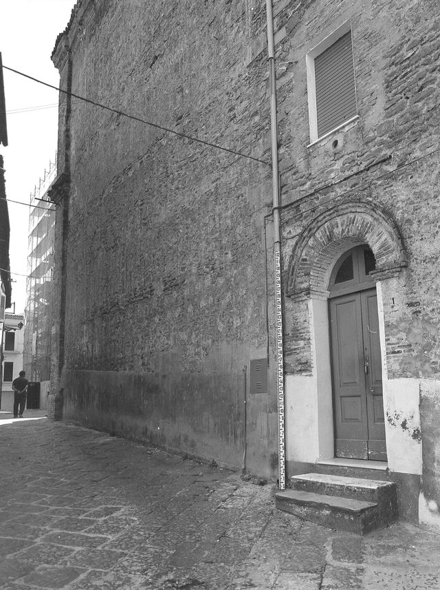 Edificio a pianta rettangolare in muratura di pietrame e cantonali in mattoni di laterizio. Il lato occidentale e' sostenuto da contrafforti in muratura