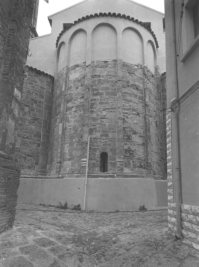 Chiesa a tre navate in muratura di pietra a vista; la facciata tripartita da paraste mistilinee con tre portali corrispondenti alle navate, la parte superiore e' un completamento di epoca recente (1954)