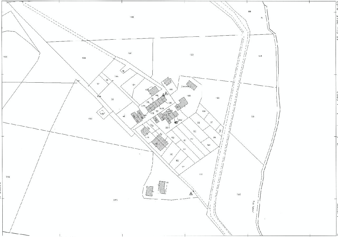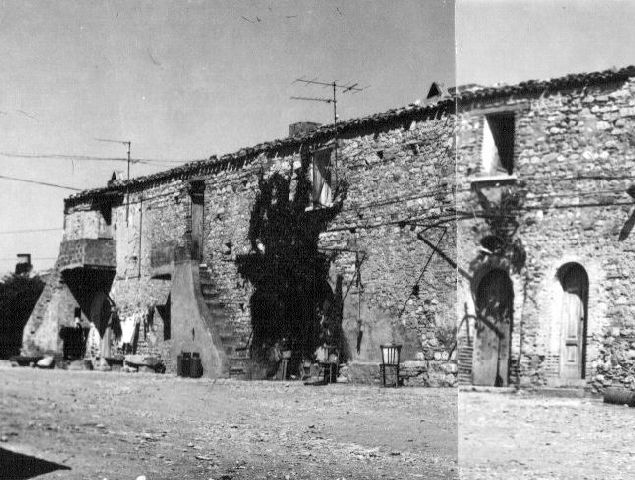 Blocco lineare composto da più unità abitative accorpate, in muratura di pietrame a vista, con tetto a due falde, a colmo unico con manto in coppi, a due piani fuori terra. Tipico esempio di abitazione rurale con scale di accesso esterne