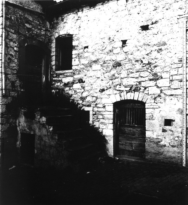 edificio su pianta irregolare in muratura continua di pietra; accesso tramite scala in pietra; portale in pietra con arco a tutto sesto; solai in legno; copertura con tetto a piu' falde