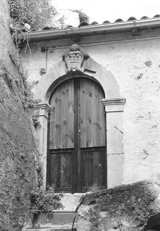Edificio di tre livelli, di cui uno seminterrato a Sud, corpo doppio di forma quasi rettangolare in muratura di conci e blocchi di pietra a vista. Al piano seminterrato volte a botte; altri orizzontamenti non accertabili. Presenta tetto a due falde a colmi differenziati, con struttura lignea e manto in coppi. Il fronte Sud presenta portali e finestre incorniciate da blocchi squadrati di pietra e davanzali in lastre modanate, con cornicione di coronamento a "romanelle". I fronti Nord e Ovest sono caratterizzati dalla presenza di supportci e da un corpo secondario, che collega il manufatto al terrapieno Nord, anticipato a Ovest da una scala a rampa unica che smonta su un portale ad arco con stemma gentilizio