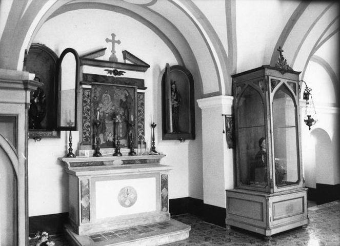 La chiesa, prospiciente un piccolo sagrato, ha schema ad aula di forma quadrangolare. La muratura è in pietrame a vista, le volte sono a crociera ed il tetto è a capanna con struttura in latero-cemento con manto in tegole portoghesi. La facciata è ad attico, con portale architravato lunettato, affiancato a destra da una lapide con iscrizione e sovrastato da oculo circolare e da un frontone triangolare con tre monofore ad arco. La centrale finge da campanile a ventola. All'interno, oltre agli arredi, un altare marmoreo due acquasantiere