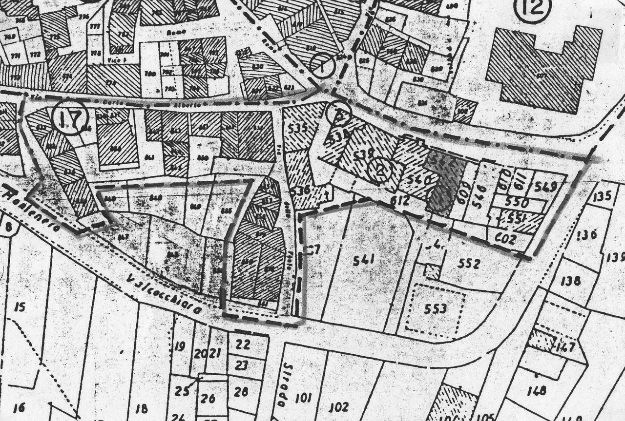 Edificio a tre livelli con pianta ad L, in muratura intonacata, solai piani in ferro e laterizio e tetto a due falde, a colmi differenziati, e manto in tegole marsigliesi. Caratterizzato da semplice composizione prospettica con portale a sinistra ed un finestra ad arco ribassato a destra ai piani superiori presenta una serie di due finestre al primo livello e di due balconi al secondo. Tutte le aperture sono incorniciate da blocchi squadrati di pietra, con davanzali e mensole in lastre di pietra modanata; reggimensole balconi in pietra scolpita a motivi floreali; ringhiere in ferro battuto. Il fronte posteriore, verso la strada provinciale, risulta alterato da recenti superfetazioni